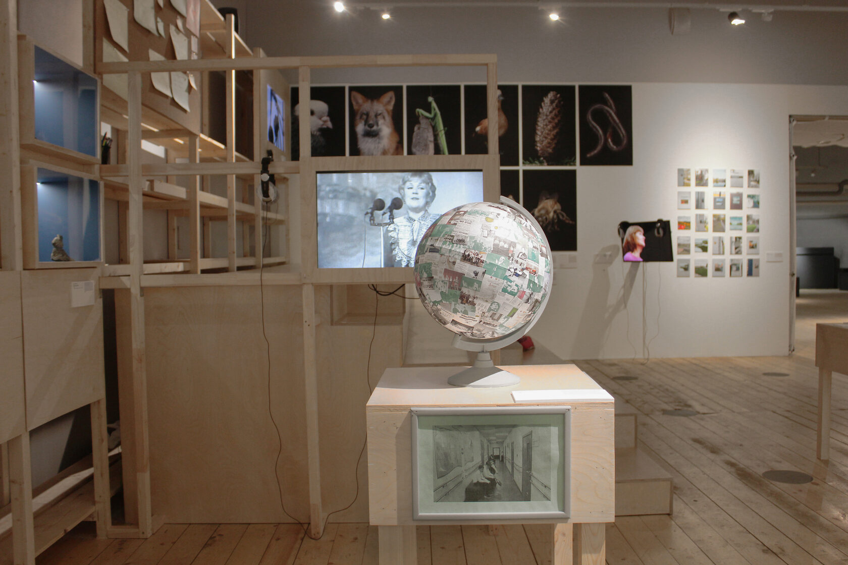 ДСП, акрил, цифровая печать на габардине (50х37,5х1,1см.), печать на цветной бумаге, видео
