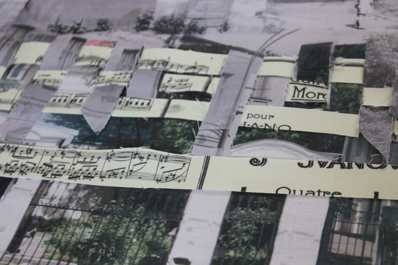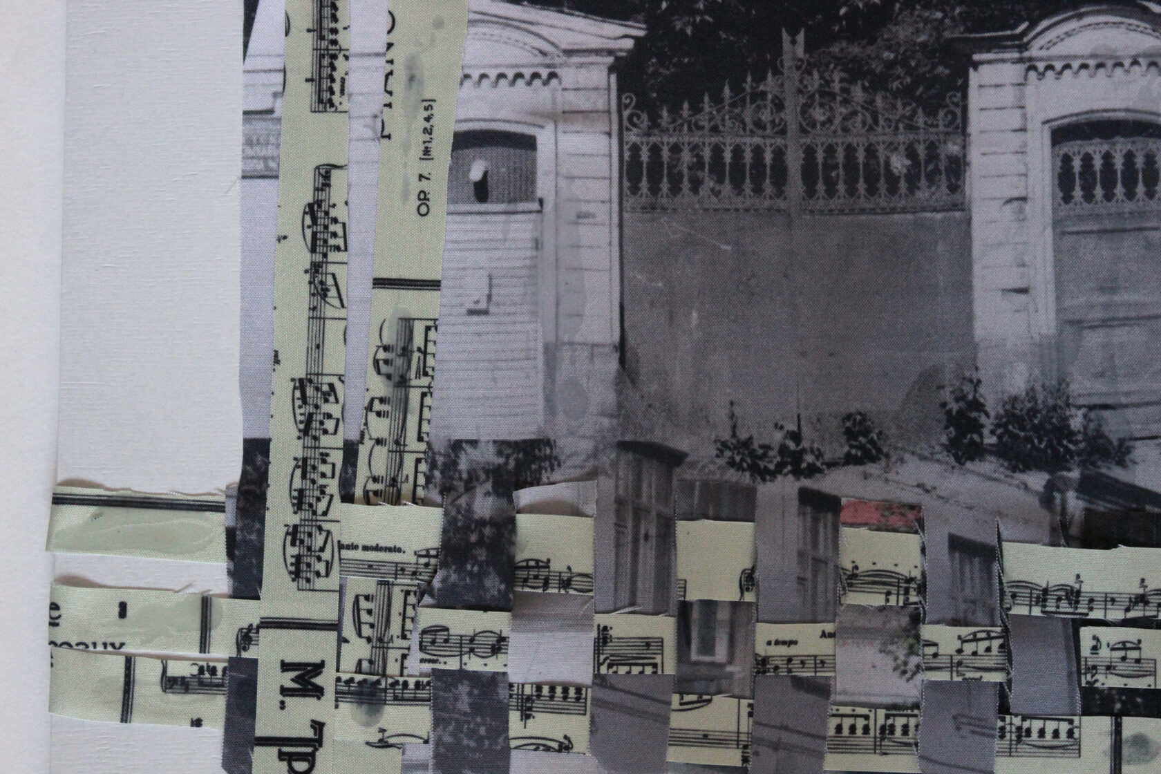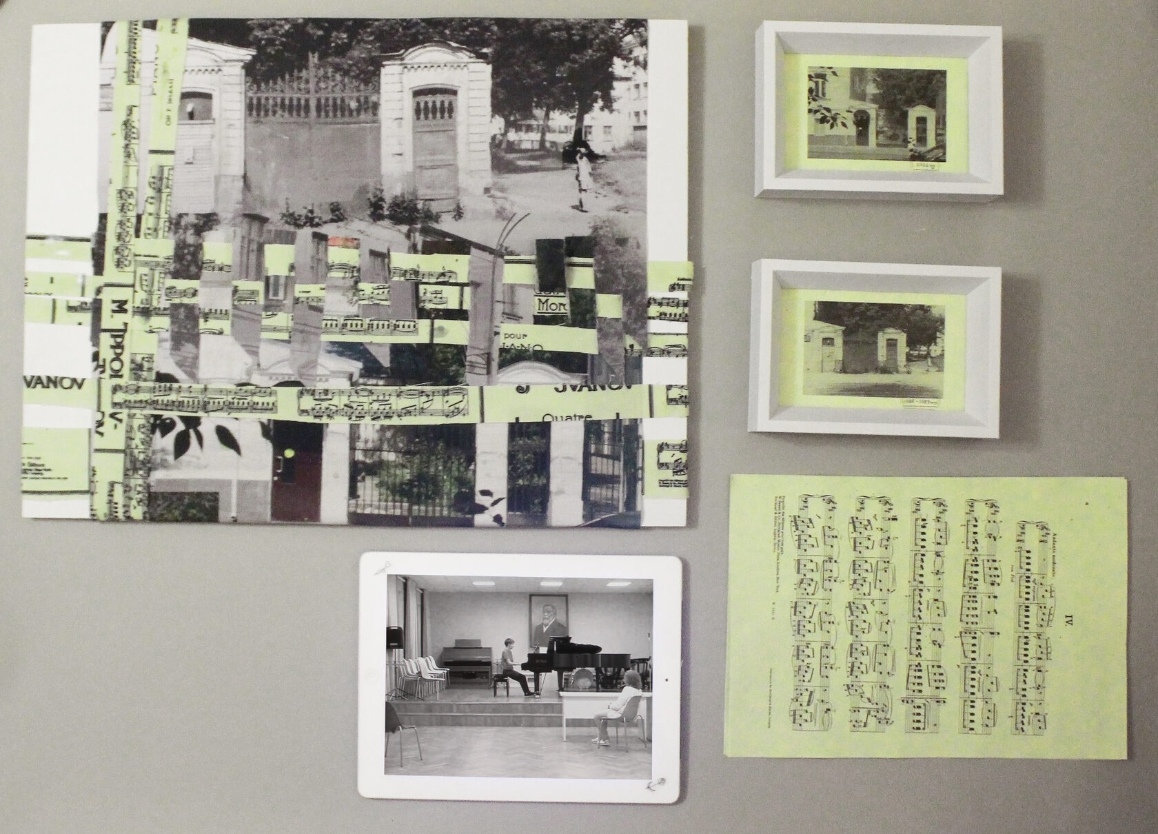 Для этой работы я использовала коллажи из фотографии школы, которую сделала 20 июня 2021г., фотографии школы 1988-1989г. из личного архива И. Нагайцева (с сайта pastvu.com) и распечатанных нот фортепианного произведения М.М. Ипполитова-Иванова.